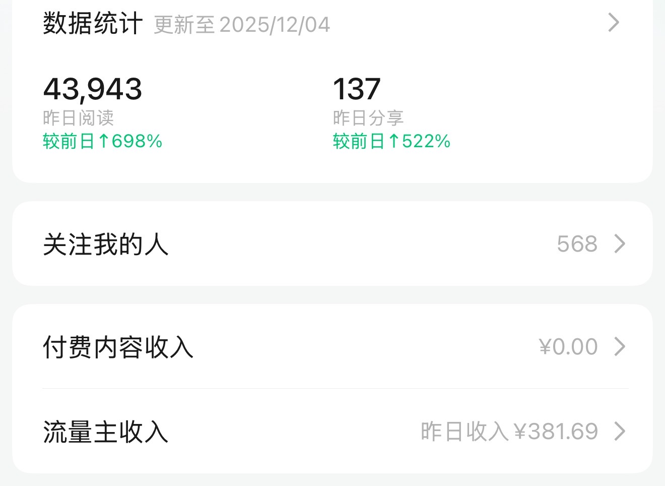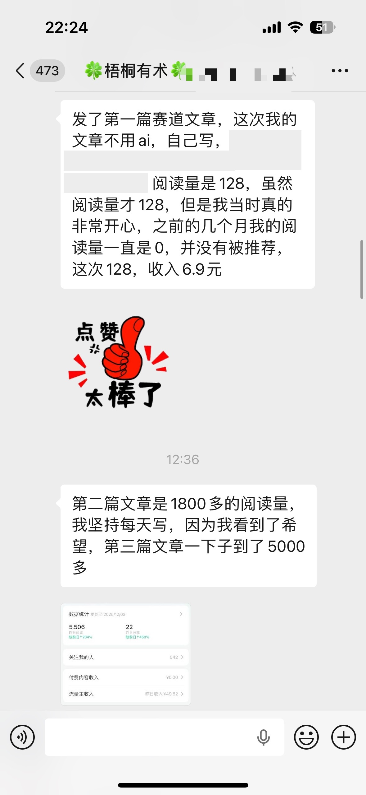到了第五天,我才发了第一篇文章,这次我的文章不用 ai,自己写,根据图片,写自己对这些老物件的情感、回忆、趣事! 阅读量是128,虽然阅读量才 128,但是我当时真的非常开心,之前的几个月我的阅读量一直是 0,并没有被推荐,这次128,收入6.9元。