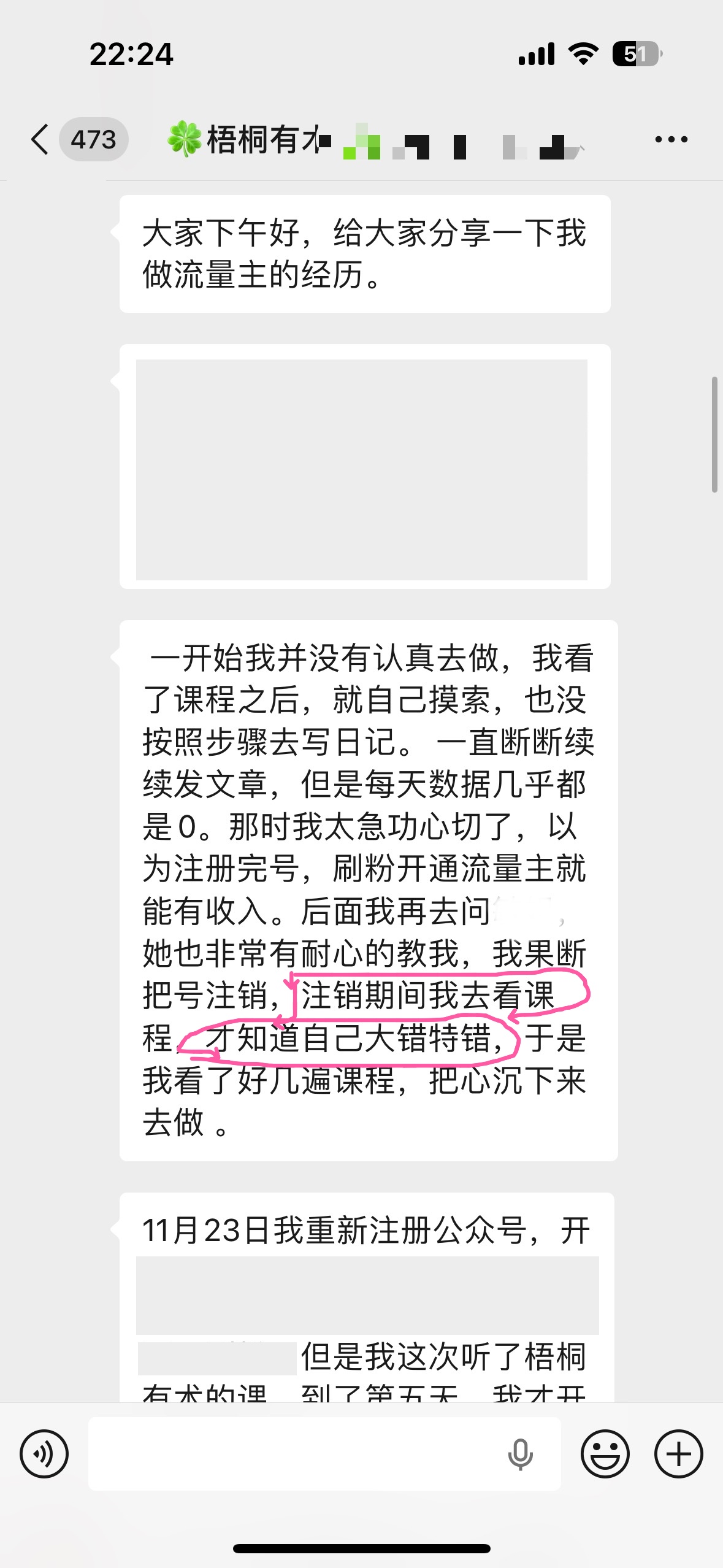 11月23日我重新注册公众号,开始写日记,记录每天发生的人事物(大约500-800字),写了四天,刷粉,但是我这次听了梧桐有术的课。