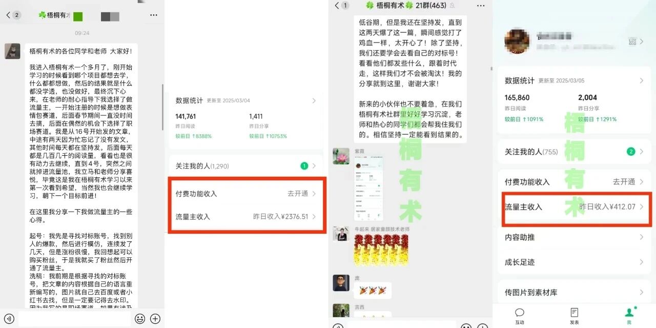 原因很简单:我们是真的很负责任的在给大家输出价值、输出靠谱的项目、输出靠谱的服务,咱们分享的任何一个项目,都是逻辑简单、适合新手,但凡你能拿出执行力去做,就一定会有钱!这是咱们10000多个梧桐有术社群成员有目共睹的!