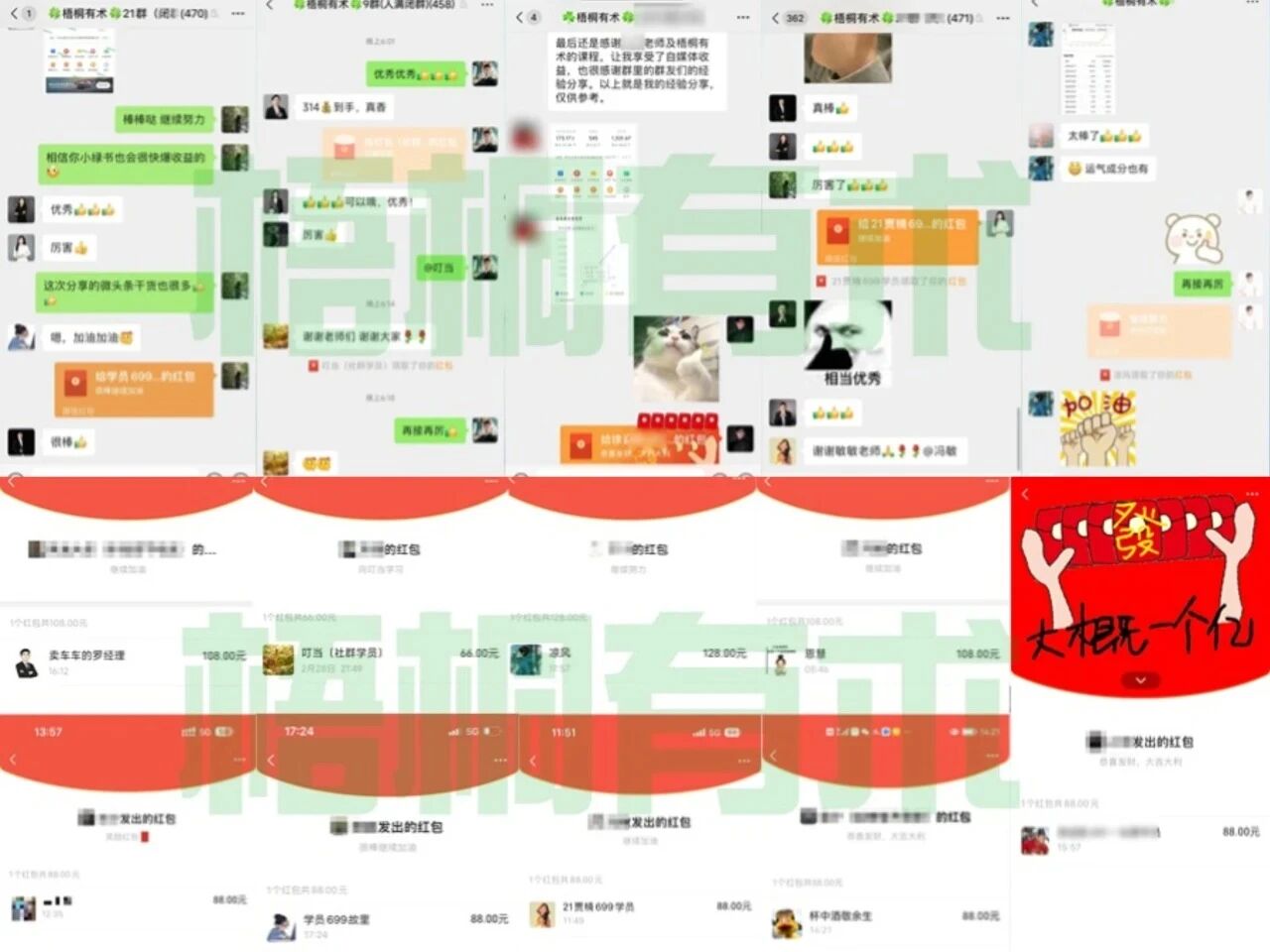 咱们会经常举办分享大会,由整个社群的成员参加,但凡参与人员,全部都会有现金红包奖励,从十几块到500元不等。